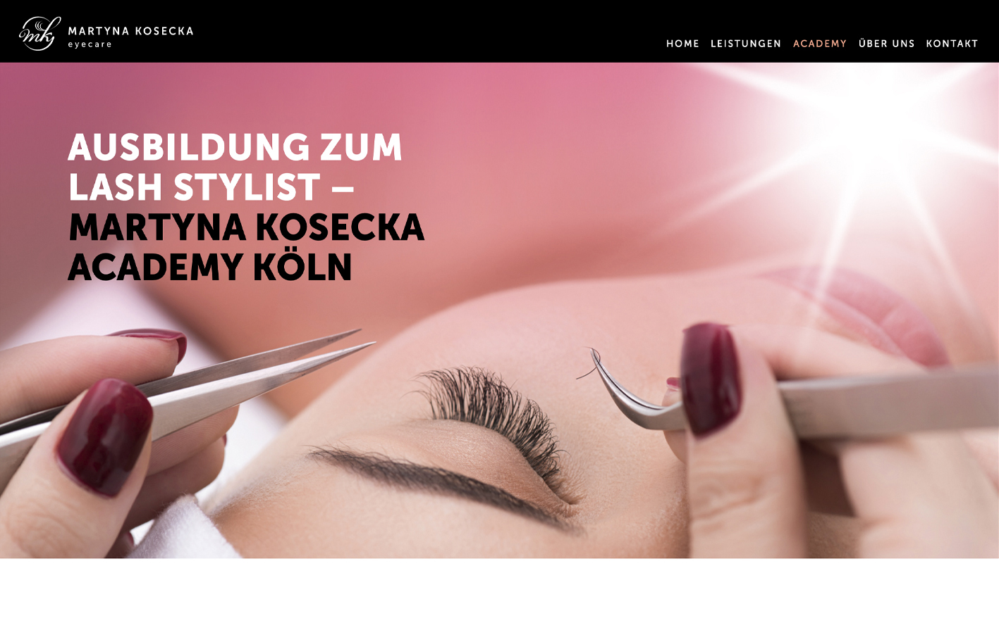 mk.eyecare Entdecke ab sofort online alle Informationen zu unseren Wimpern-Looks, dem Salon und zu unserem Schulungsangebot für Lash Stylisten an der MARTYNA KOSECKA academy. Viel Spaß!